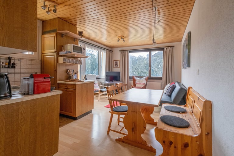 In allen voll ausgestatten Küchen Geschirrspüler, Kaffeemachinen (Kapsel), Fondue und Raclette Grill.